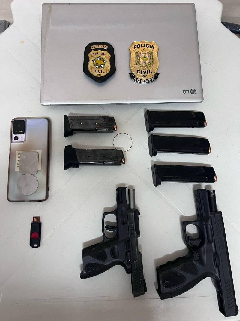 No cumprimento das diligências, realizadas em São José de Mipibu – RN, os agentes apreenderam um notebook, um pen drive, um aparelho celular, duas armas de fogo, carregadores e munições.