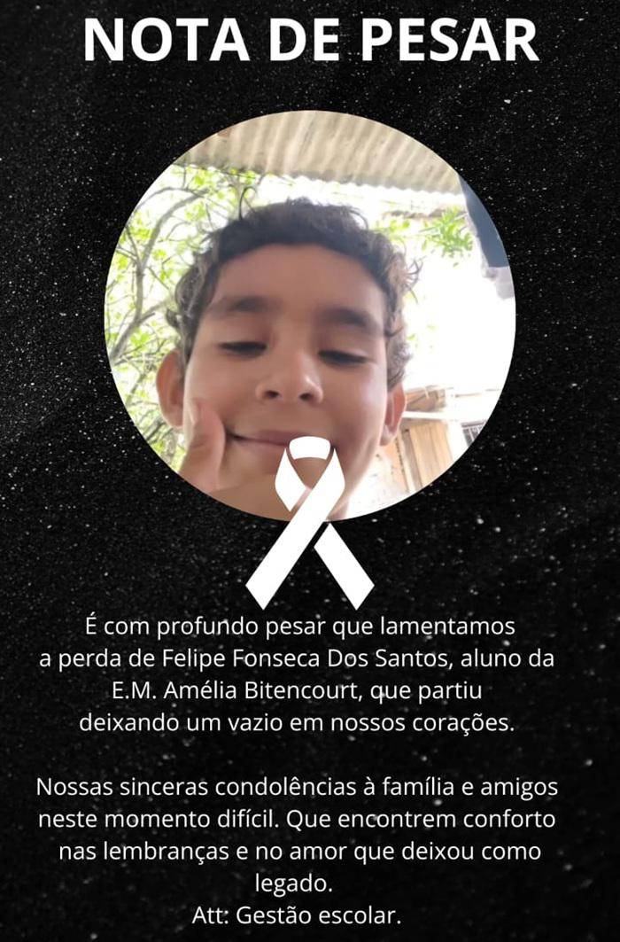 Em razão dessa tragédia, a Escola Municipal Amélia Bitencourt, instituição onde o menino estudava, emitiu uma nota de pesar, manifestando sua profunda consternação pela perda irreparável.